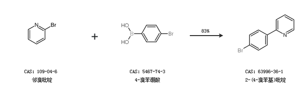 1.通过邻溴吡啶和4-溴苯硼酸合成2-(4-溴苯基)吡啶,收率约83%;