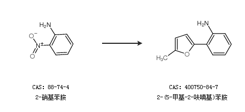2.通过2-硝基苯胺合成2-(5-甲基-2-呋喃基)苯胺
