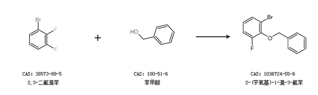 2.通过2,3-二氟溴苯和苯甲醇合成2-(苄氧基)-1-溴-3-氟苯
