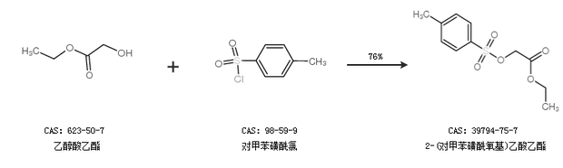 1.通过乙醇酸乙酯和对甲苯磺酰氯合成2-(对甲苯磺酰氧基)乙酸乙酯,收率约76%;