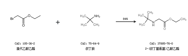 2.通过溴代乙酸乙酯和叔丁胺合成2-(叔丁基氨基)乙酸乙酯,收率约84%;