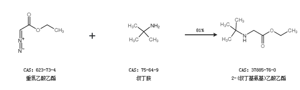 1.通过重氮乙酸乙酯和叔丁胺合成2-(叔丁基氨基)乙酸乙酯,收率约81%;