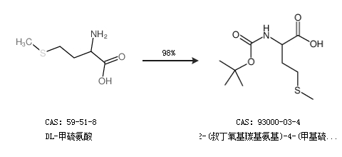 2.通过DL-甲硫氨酸合成2-(叔丁氧基羰基氨基)-4-(甲基硫代)丁酸,收率约98%;