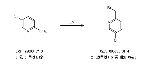 2.通过5-氯-3-甲基吡啶合成2-(溴甲基)-5-氯-吡啶(9ci),收率约58%;