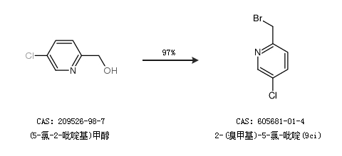 1.通过(5-氯-2-吡啶基)甲醇合成2-(溴甲基)-5-氯-吡啶(9ci),收率约97%;