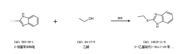 2.通过2-巯基苯并咪唑和乙醇合成2-(乙基硫代)-(9ci)-1H-苯并咪唑,收率约86%;