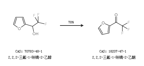 1.通过2,2,2-三氟-1-呋喃-2-乙醇合成2,2,2-三氟-1-呋喃-2-乙酮,收率约78%;