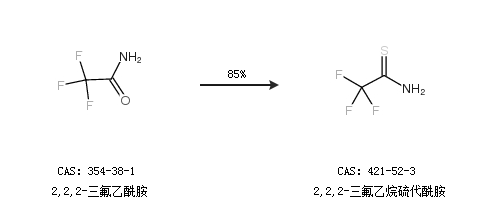 1.通过2,2,2-三氟乙酰胺合成2,2,2-三氟乙烷硫代酰胺,收率约85%;