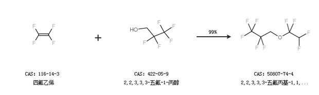 1.通过四氟乙烯和2,2,3,3,3-五氟-1-丙醇合成2,2,3,3,3-五氟丙基-1,1,2,2-四氟乙酯,收率约99%;