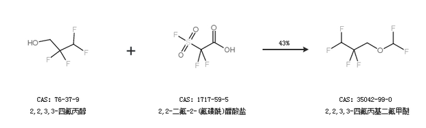 2.通过2,2,3,3-四氟丙醇和2,2-二氟-2-(氟磺酰)醋酸盐合成2,2,3,3-四氟丙基二氟甲醚,收率约43%;