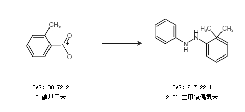 1.通过2-硝基甲苯合成2,2''-二甲氫偶氮苯,收率约85%;