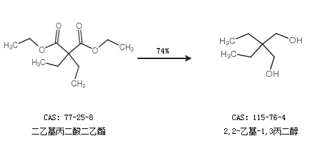1.通过二乙基丙二酸二乙酯合成2,2-乙基-1,3丙二醇,收率约74%;