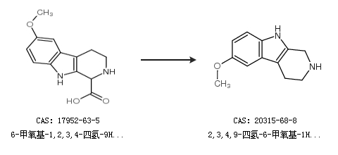 中文别名 2,3,4,9-四氢-6-甲氧基-1H-吡啶并[3,4-B]吲哚;6-甲氧基-1,2,3,4-四氢-9H-吡啶并[3,4-B]吲哚;6-甲氧基-1,2,3,4-四氢-β-咔啉;