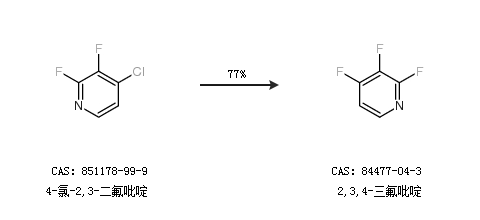 1.通过4-氯-2,3-二氟吡啶合成2,3,4-三氟吡啶,收率约77%;