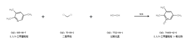 2.通过2,3,5-三甲基吡啶、二氯甲烷和过氧化氢合成2,3,5-三甲基吡啶 1-氧化物,收率约91%;