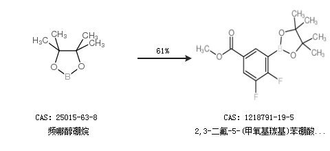 2.通过频哪醇硼烷合成2,3-二氟-5-(甲氧基羰基)苯硼酸频那醇酯,收率约61%;
