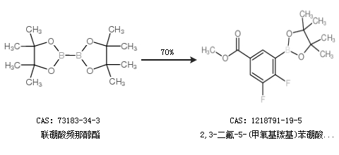 1.通过联硼酸频那醇酯合成2,3-二氟-5-(甲氧基羰基)苯硼酸频那醇酯,收率约70%;