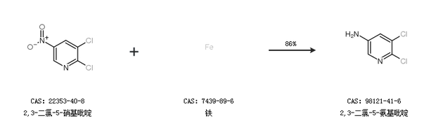2.通过2,3-二氯-5-硝基吡啶和铁合成2,3-二氯-5-氨基吡啶,收率约86%;