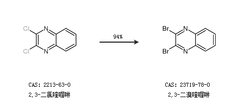2.通过2,3-二氯喹喔啉合成2,3-二溴喹喔啉,收率约94%;