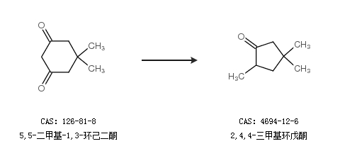 2.通过5,5-二甲基-1,3-环己二酮合成2,4,4-三甲基环戊酮
