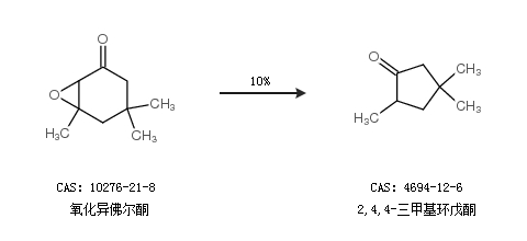 1.通过氧化异佛尔酮合成2,4,4-三甲基环戊酮,收率约10%;