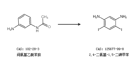 2.通过间氨基乙酰苯胺合成2,4-二氨基-1,5-二碘甲苯