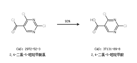 2.通过2,4-二氯-5-嘧啶甲酰氯合成2,4-二氯-5-嘧啶甲酸,收率约93%;