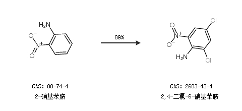 1.通过2-硝基苯胺合成2,4-二氯-6-硝基苯胺,收率约89%;