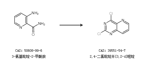2.通过3-氨基吡啶-2-甲酰胺合成2,4-二氯吡啶并[3,2-d]嘧啶