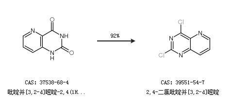 1.通过吡啶并[3,2-d]嘧啶-2,4(1H,3H)-二酮合成2,4-二氯吡啶并[3,2-d]嘧啶,收率约92%;