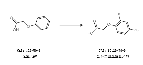 1.通过苯氧乙酸合成2,4-二溴苯氧基乙酸