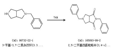 2.通过3-苄基-3,7-二氮杂双环[3.3.0]辛烷合成2,5-二苄基四氢吡咯并[3,4-c]吡咯-1,3-二酮,收率约74%;