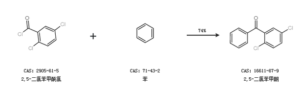 2.通过2,5-二氯苯甲酰氯和苯合成2,5-二氯苯甲酮,收率约74%;