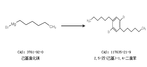 2.通过己基溴化镁合成2,5-双(己基)-1,4-二溴苯