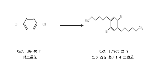 1.通过对二氯苯合成2,5-双(己基)-1,4-二溴苯