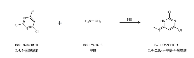 1.通过2,4,6-三氯嘧啶和甲胺合成2,6-二氯-n-甲基-4-嘧啶胺,收率约58%;
