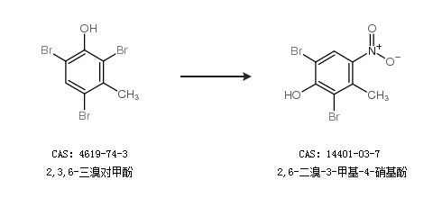 2.通过2,3,6-三溴对甲酚合成2,6-二溴-3-甲基-4-硝基酚