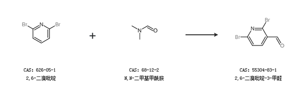 2.通过2,6-二溴吡啶和N,N-二甲基甲酰胺合成2,6-二溴吡啶-3-甲醛