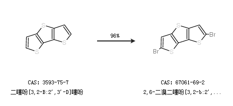 1.通过二噻吩[3,2-B:2'',3''-D]噻吩合成2,6-二溴二噻吩[3,2-b:2'',3''-d]噻吩,收率约96%;