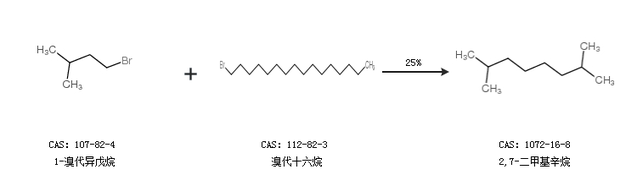 2.通过1-溴代异戊烷和溴代十六烷合成2,7-二甲基辛烷,收率约25%;