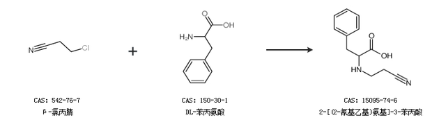 1.通过DL-苯丙氨酸和丙烯腈合成2-[(2-氰基乙基)氨基]-3-苯丙酸