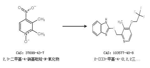 2.通过2,3-二甲基-4-硝基吡啶-N-氧化物合成2-[[[3-甲基-4-(2,2,2三氟乙氧基)-2-吡啶]-甲基]硫基]-1H-苯并咪唑