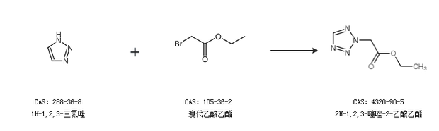 1.通过溴代乙酸乙酯和1H-1,2,3-三氮唑合成2H-1,2,3-噻唑-2-乙酸乙酯