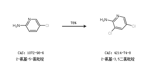 1.通过2-氨基-5-氯吡啶合成2-氨基-3,5二氯吡啶,收率约78%;