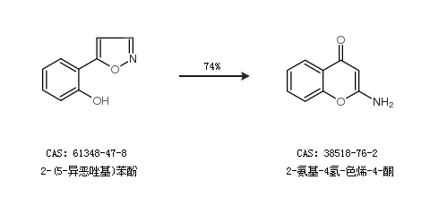 1.通过2-(5-异恶唑基)苯酚合成2-氨基-4氢-色烯-4-酮,收率约74%;