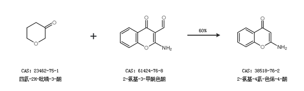 2.通过四氢-2H-吡喃-3-酮和2-氨基-3-甲酰色酮合成2-氨基-4氢-色烯-4-酮,收率约60%;