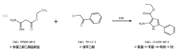 1.通过2-脒基乙酸乙酯盐酸盐和2-溴苯乙酮合成2-氨基-5-苯基-1H-吡咯-3-羧酸乙酯,收率约63%;