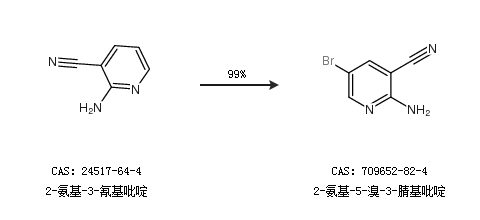 1.通过2-氨基-3-氰基吡啶合成2-氨基-5-溴-3-腈基吡啶,收率约99%;