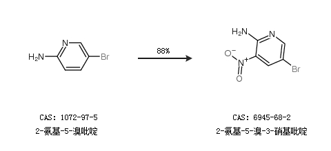 1.通过2-氨基-5-溴吡啶合成2-氨基-5-溴-3-硝基吡啶,收率约88%;