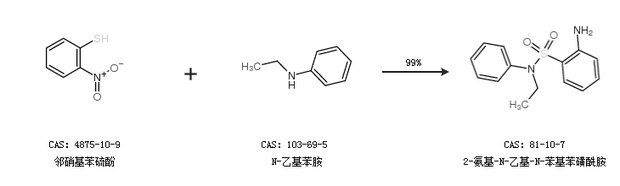 1.通过邻硝基苯硫酚和N-乙基苯胺合成2-氨基-N-乙基-N-苯基苯磺酰胺,收率约99%;